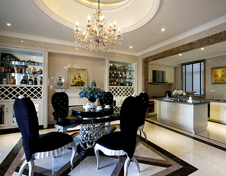 中國傳統(tǒng)居室非常講究空間的層次感。這種傳統(tǒng)的審美觀念在“新中式”裝飾風格中,又得到了全新的闡釋:依據(jù)住宅使用人數(shù)和私密程度的不同,需要做出分隔的功能性空間,則采用“埡口”或簡約化的“博古架”來區(qū)分;在需要隔絕視線的地方,則使用中式的屏風或窗欞,通過這種新的分隔方式,單元式住宅就展現(xiàn)出中式家居的層次之美。