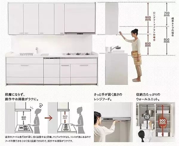 在臺面的高度設(shè)計(jì)時(shí),要注意不同區(qū)域的高度要有所差別。如洗菜區(qū)臺面要高一些,切菜、烹飪區(qū)的臺面要低一些。
