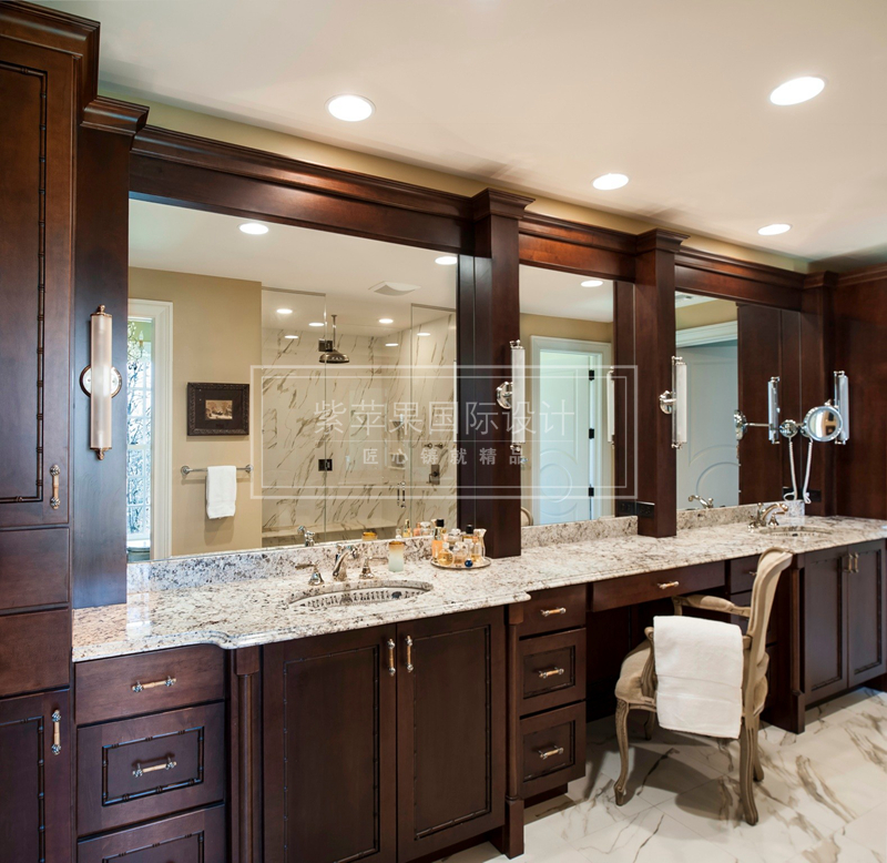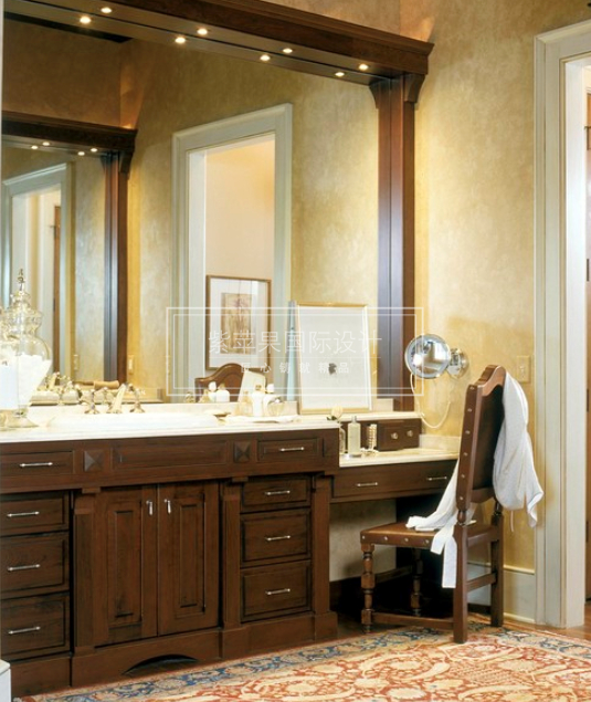 在衛(wèi)生間設(shè)計(jì)個(gè)化妝臺(tái)、防潮的小化妝品柜和一張凳子,在衛(wèi)生間就可以很方便的完成化妝、卸妝。