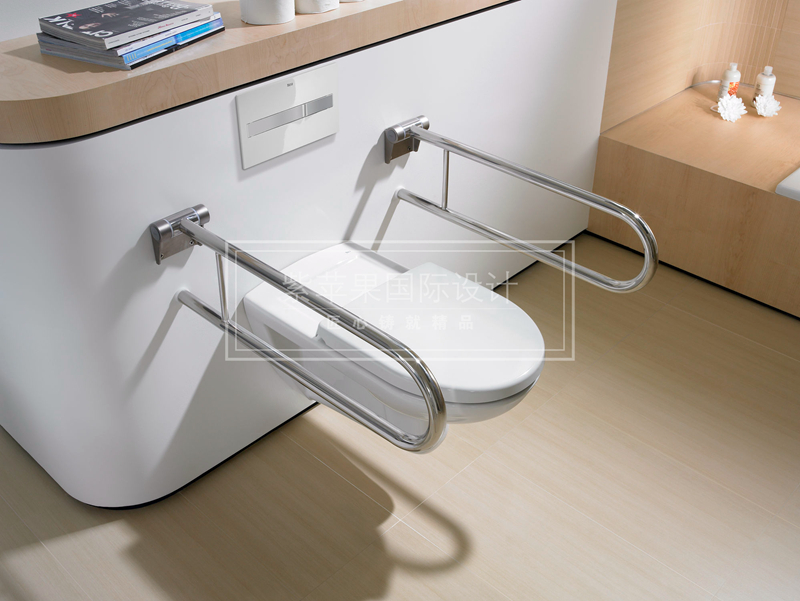 在馬桶左右手邊都可以設(shè)置L型扶手,這樣老人在起來時(shí)好有個(gè)借力的地方。
