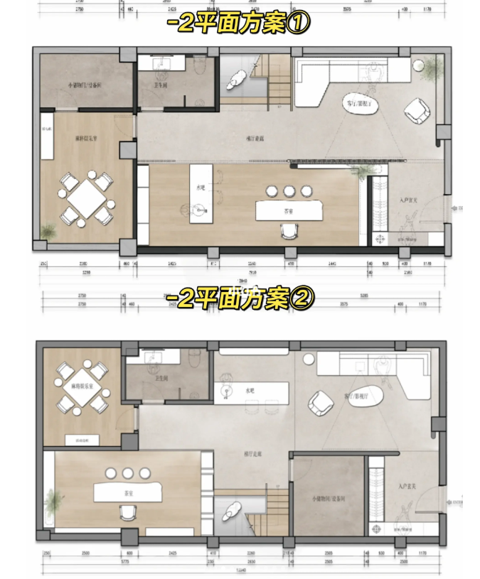 地下室: 修改了樓梯的位置,利用樓梯旁邊的位置做了一個(gè)客衛(wèi),其他區(qū)域分為了會(huì)客區(qū)休閑影視。