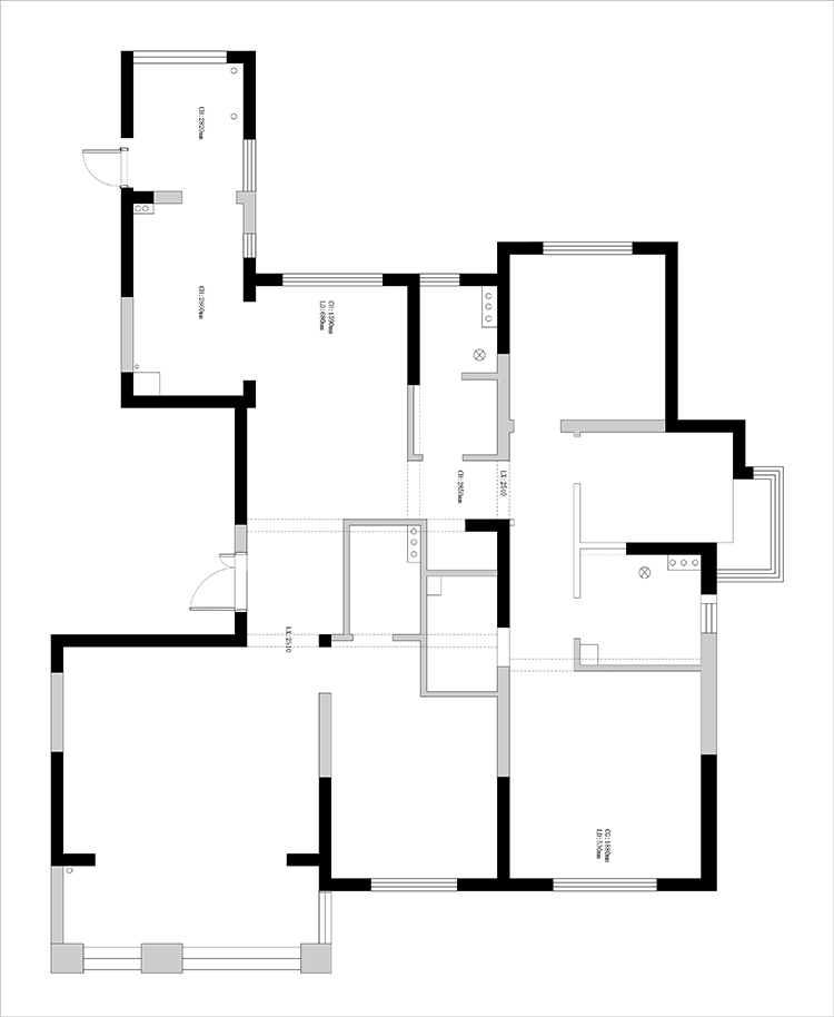原始結(jié)構(gòu)進(jìn)門有一個(gè)衛(wèi)生間,不太合理,設(shè)計(jì)師后期全部打開來(lái)做,由于承重結(jié)構(gòu)三個(gè)房間的位置也比較固定,所以我們把主要的改動(dòng)思路放在了公共區(qū)域即客餐廳這幾塊空間。
