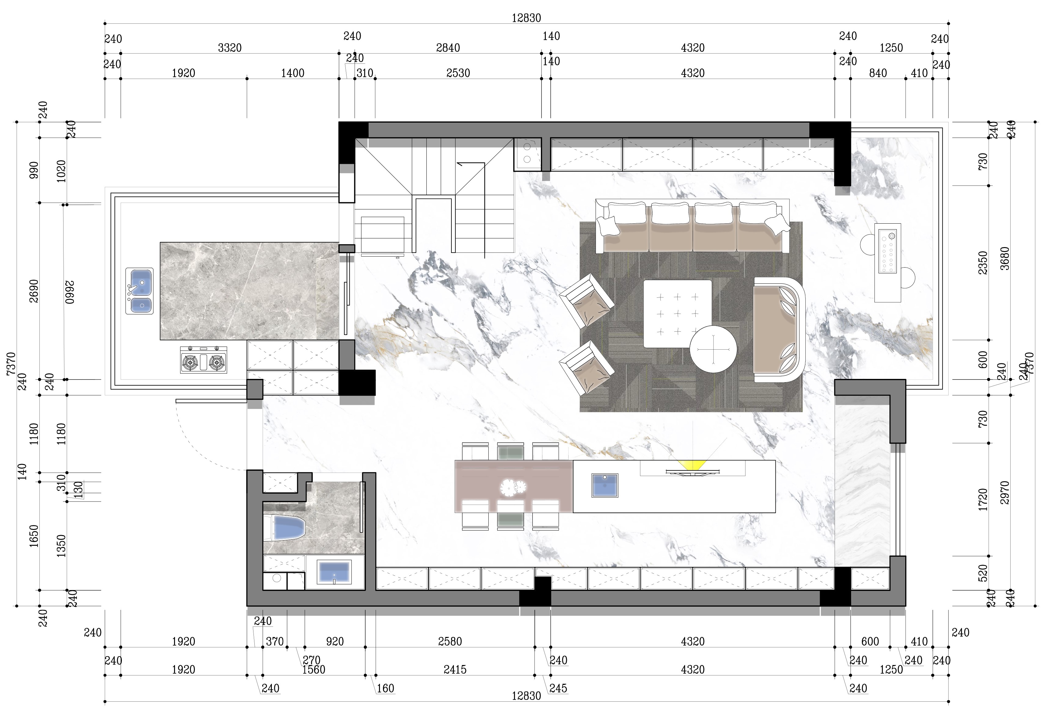 兩套方案一樓品質(zhì)感都挺高的,不保留房間,廚房衛(wèi)生問客餐廳,來加長島臺,試問不是那哪個人心中的夢中情房!