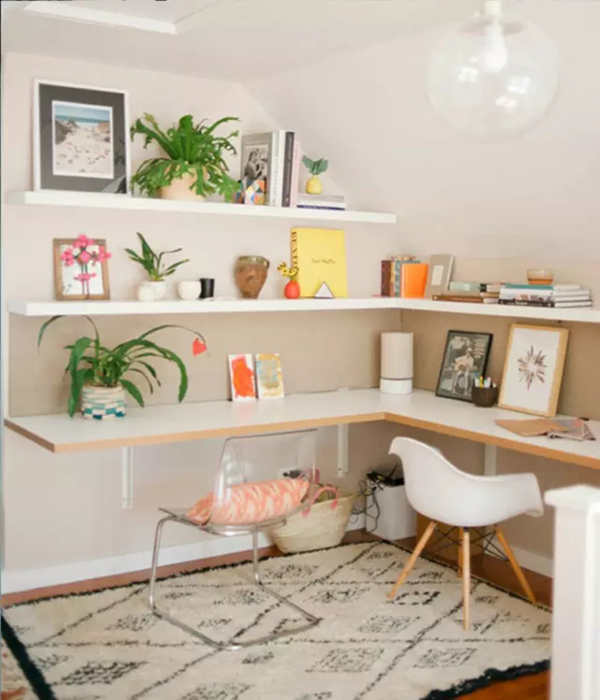 建造這樣的工作區(qū)會(huì)需要大一點(diǎn)的空間,但對(duì)比起專門的書房來說,整個(gè)成本真的會(huì)低很多,而且整齊利落,即是靈感當(dāng)中提到的置物展示空間,又可以玩電腦、做功課和工作,掛墻式的桌面和擱板置物架簡(jiǎn)潔而且價(jià)格親民,再配張地毯,整個(gè)位置立刻就亮眼了起來。