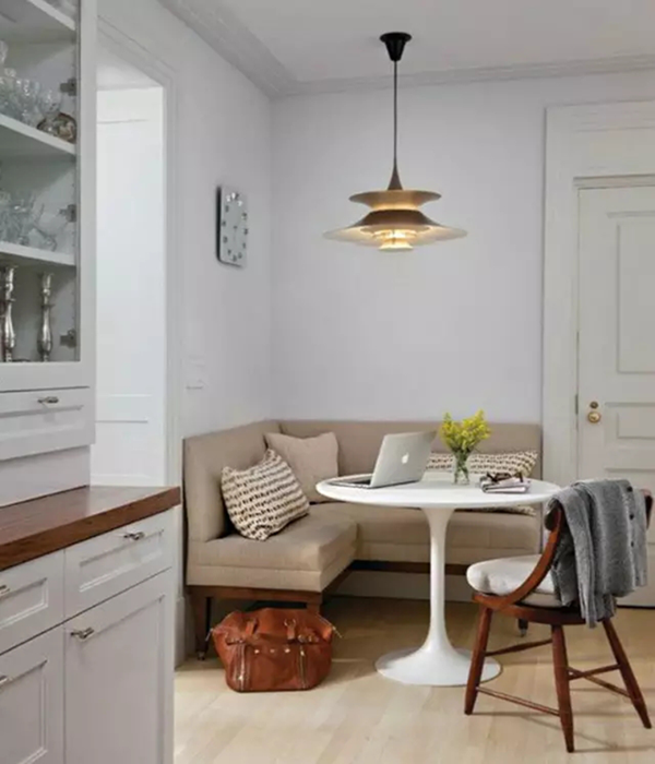 不大的轉(zhuǎn)角位置,尤其是餐桌靠墻的小角落,有時(shí)連放個(gè)落地?zé)舳紩?huì)顯得擁擠。想要讓這個(gè)小小的空間生動(dòng)起來?