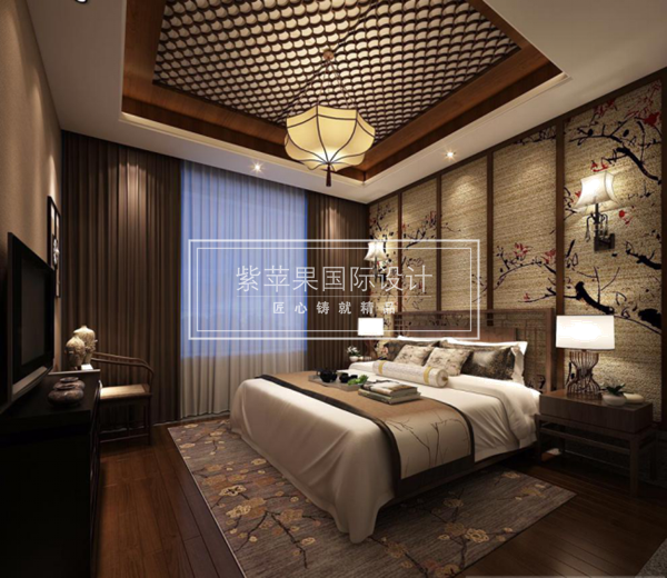 臥室的功能主要是睡眠休息,屬私人空間,不向客人開放,所以臥室裝修不必有過多的造型,通常也不需吊頂,墻壁的處理越簡潔越好,通常刷乳膠漆即可,床頭上的墻壁可適當做點造型和點綴。臥室的壁飾不宜過多,還應與墻壁材料和家具搭配得當。臥室的風格與情調(diào)主要不是由墻、地、頂?shù)扔惭b修來決定的,而是由窗簾、床罩、衣櫥等軟裝飾決定的,它們面積很大,它們的圖案、色彩往往主宰了臥室的格調(diào),成為臥室的主旋律。下面我們來欣賞下【無錫紫蘋果裝飾】臥室裝修效果圖