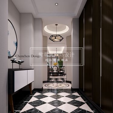 本案以這條主線展開(kāi),為了使空間不會(huì)過(guò)于沉悶不適宜年輕人居住,或者過(guò)于鮮活卻不適宜長(zhǎng)輩居住。將現(xiàn)代設(shè)計(jì)元素和傳統(tǒng)元素結(jié)合使用,傳統(tǒng)元素中的高古、優(yōu)雅的意味以及一直以來(lái)古人追求的參與自然、融入自然的情懷與簡(jiǎn)約有種天然的契合,因此兩者相遇可以搭配出優(yōu)美、典雅的古風(fēng)遺韻。