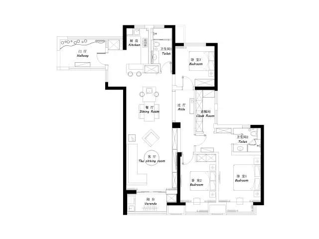利用過道配以黑色埡口門套將客餐廳與臥室分隔,將動區(qū)與靜去區(qū)分開,是整個空間寧靜而悠遠(yuǎn),沒有過多的裝飾物去點綴,黑白灰的搭配下,粉色與藍(lán)色的單椅便是搶眼的亮點。