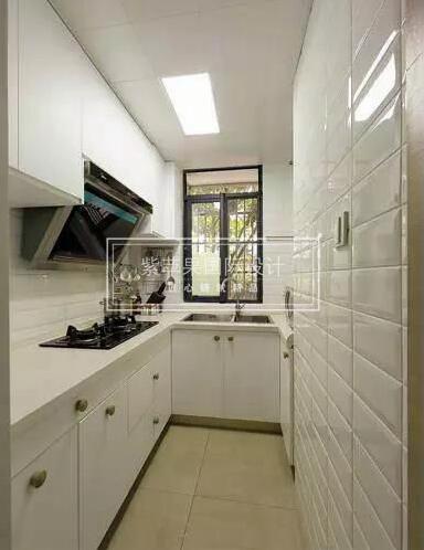 狹長的廚房全部采用白色主材,顯得空間明亮整潔。