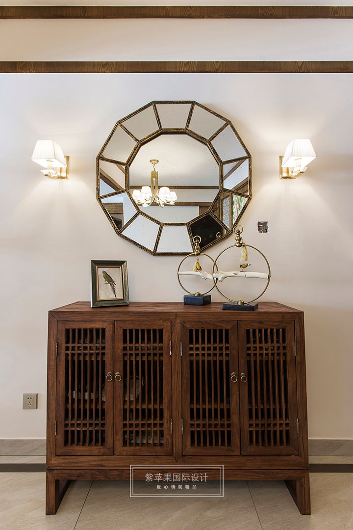因本案業(yè)主是作為度假需求使用,所以玄關(guān)處并未做復(fù)雜設(shè)計(jì),而是從美觀角度出發(fā)僅作簡單陳設(shè),棕色系鞋柜和精致的裝飾品風(fēng)格獨(dú)特而別致,雖是簡單陳設(shè)卻不感隨意潦草,讓到訪者一入門就深感業(yè)主對(duì)生活品質(zhì)的不凡追求。